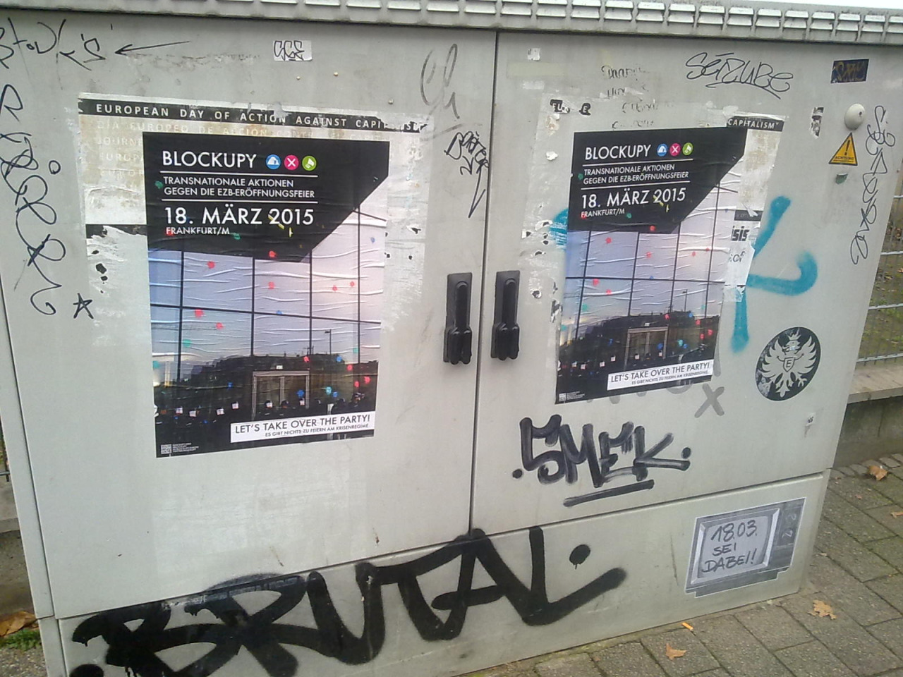Sticker am S-Bahn Eingang Ostendstraße (Süd) und am VDSL Verteiler vor